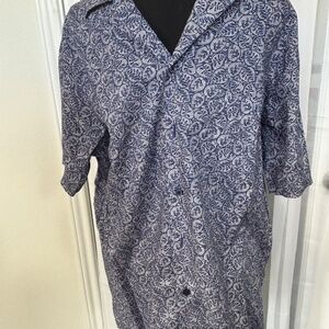 Daniel Cremieux in a beautiful blue and white leaf pattern shirt from his signature collection. Short sleeve
