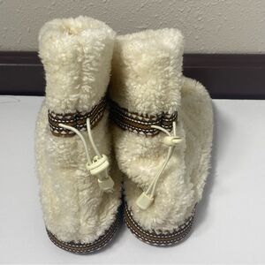 Daniel Green White Cap Moccasin Slippers Boots W/ Adjustable Strings Women's XS