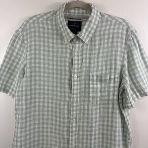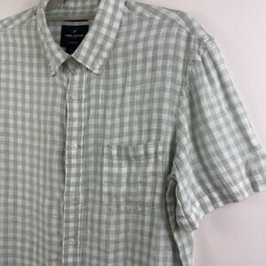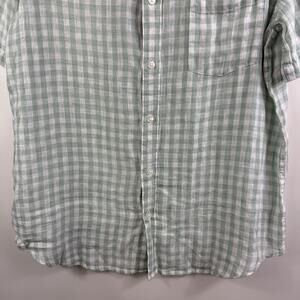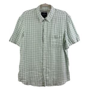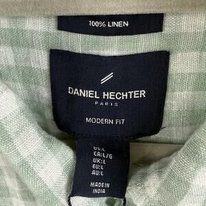 The Daniel Hechter 100% Linen Light Green White Plaid Button Up Shirt in size Large offers a modern fit for men.
