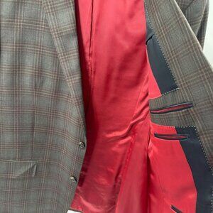 Daniel Hechter Paris 100% Wool Plaid Blazer Mens Size 44L Red Lining