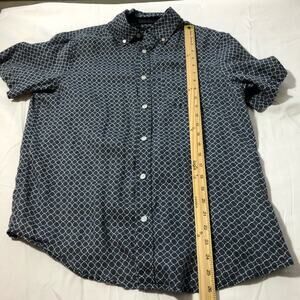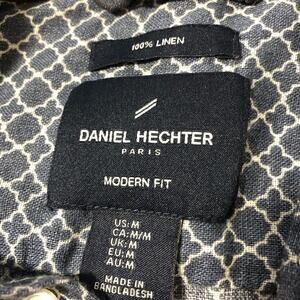 Daniel Hechter mens M modern fit linen blue white print short sleeve button up