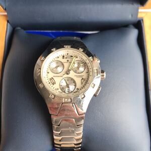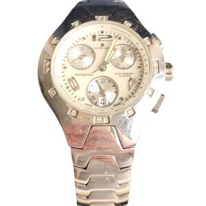 Functional, winding needed, some surface scratches throughout. Extra links included. Gently preowned & carefully cared for