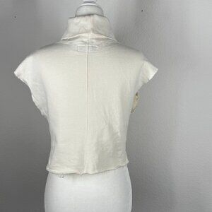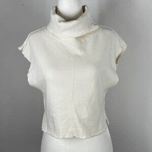 Daniel Patrick Crop Top Sleeveless XS Ivory Raw Edges Turtleneck Athleisure
