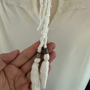 Daniel Rainn Cream Lace Boho Peasant Blouse Size M – Long Sleeve, Tie Neck, Romantic Feminine Top