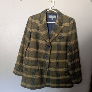 Wool-blend yellow plaid jacket by Daniel Rainn at Anthropologie. Size S, hardly ever worn! Nicely lined and good weight to keep warm and stay stylish in the fall.