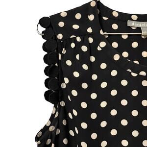 Daniel Rainn Black Cream Polka Dot Sleeveless Top with Polka Dot Trim Accent M