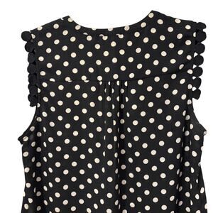 Daniel Rainn Black and Cream Polka Dot Sleeveless Top with Polka Dot Trim Accent M