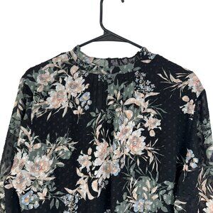 Daniel Rainn Black Floral Long-Sleeve V-Neck Tunic Blouse Women Size XL Pullover