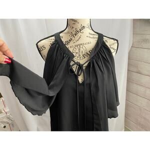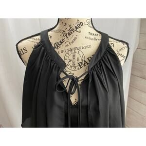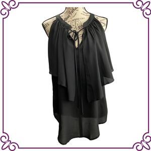 Daniel Rainn Black Flowy Ruffles Sleeveless V Neck Blouse Small