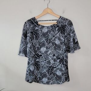 Daniel Rainn | Black & White Floral Print Short Sleeve Blouse Size Small