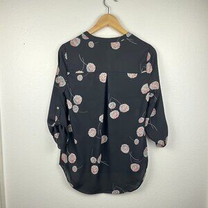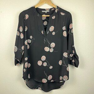Daniel Rainn | Black/Pink Floral Chiffon 3/4 Tab Sleeve Blouse Size S
