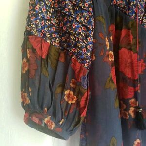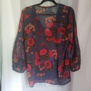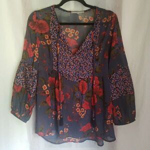 Daniel Rainn Blouse Floral Bohemian Puff Sleeves Relaxed Flow Sheer Women's L