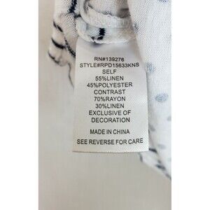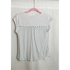 Daniel Rainn Blouse Top Size Small Polka Dot Striped White Black Linen Blend