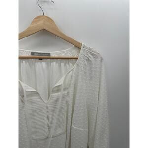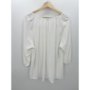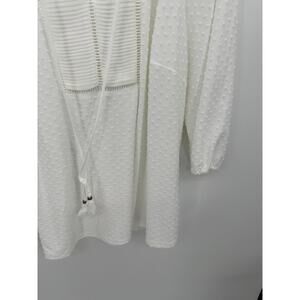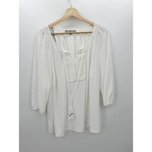 DanielRainn Blouse Tunic Women 2X White Swiss Dot 3/4 Sleeve Tassels Boho Top