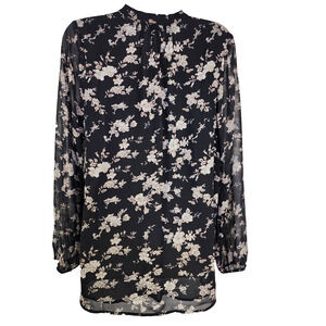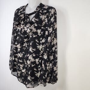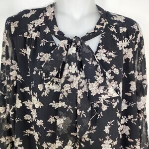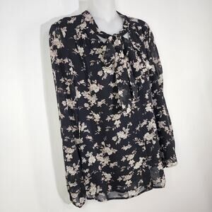 Daniel Rainn Blouse Women Large V Tie Neck Floral Print Button Sheer Long Sleeve