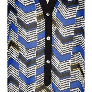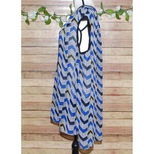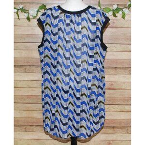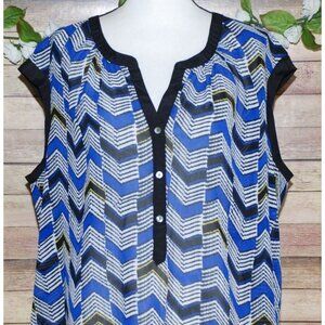 Daniel Rainn Women's Blue Chevron Sleeveless Sheer Blouse Size 2X V-Neck Half Button Up in Excellent Condition
