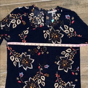 Daniel Rainn Blue Tan Relaxed 3/4 Sleeve Blouse