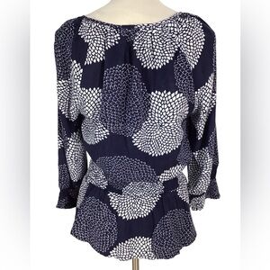 Daniel Rainn Blue White Floral 3/4 Sleeve Boho Blouse Size M