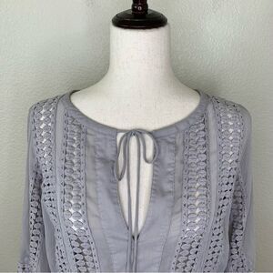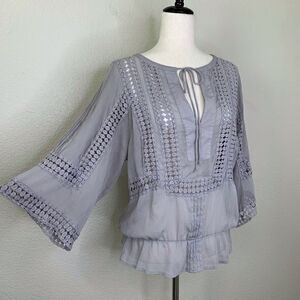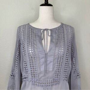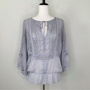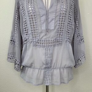 Daniel Rainn Boho Semi- Sheer Embroidered Gray Blouse