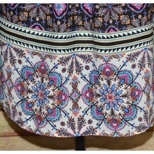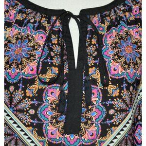 Daniel Rainn Chiffon Blouse Top Size XL Tie & Tassels Colorful Floral & Black