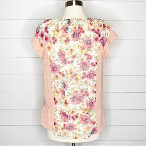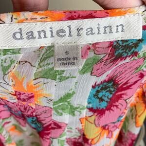 Daniel Rainn Crochet Floral Peplum Top Pink Green Yellow Small