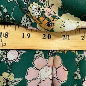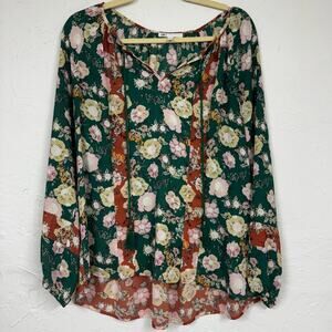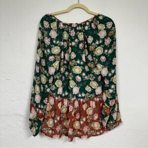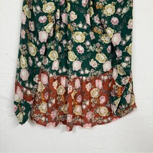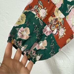 Daniel Rainn DR2 Mixed Floral Green Orange Pink Puff Sleeve Blouse Womens M Boho