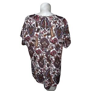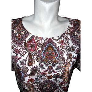 Daniel Rainn DR2 Top Size XL Colorful Paisley Print Hi-Lo SS Blouse Tunic