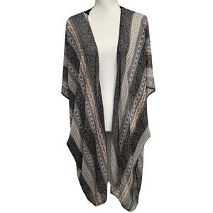 Daniel Rainn Duster Semi Sheer Longer Length SZ 1X Black White Grey EUC Boho