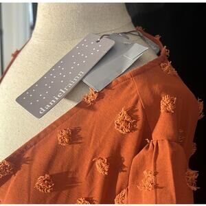 Daniel Rainn Ellen Swiss-Dot Maxi Dress, Burn Orange Pockets! XXL flounce sleeve