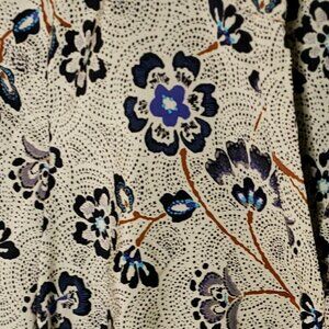 Daniel Rainn floral abstract blouse with roll tab cuff XS. Has a small high low hem. Gently used condition. Measurements are: 19 ½” sleeve, 25” from shoulder to shortest part of hem, and 23” from armpit to armpit.