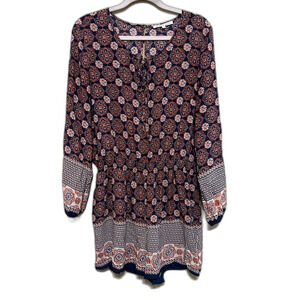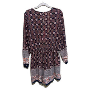 Daniel Rainn Floral Medallion Romper Womens Large Long Sleeve Multicolor Boho