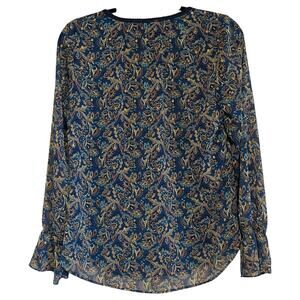Daniel Rainn Floral Paisley Keyhole Long Sleeve Blouse Navy Gold Petite Small