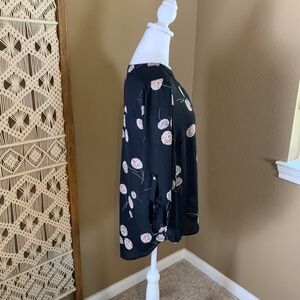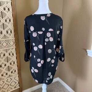 Daniel Rainn Floral Print Blouse Size M - Black Boho Pom Pom Sleeve Midi Top