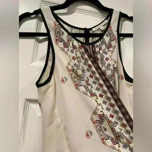 Daniel Rainn Flowy Layered Earth Tone Aztec Print Sleeveles Blouse Button Size S