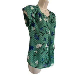 Daniel Rainn Green Floral Peasant XS Top Spring Summer Plus Size Shirt Blouse