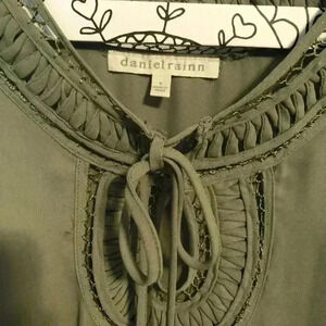 It has a beautiful neckline and ties in the front. It is in preowned condition.