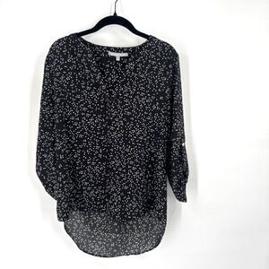 Daniel Rainn Koda Split Neck Rain Drop Polka Dot Blouse Black & White Size Small