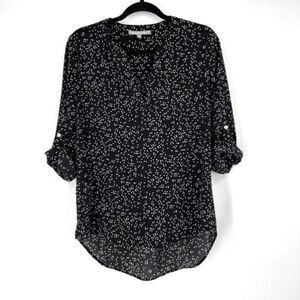 Daniel Rain Koda Split Neck Rain Drop Polka Dot Blouse Black & White Size Small