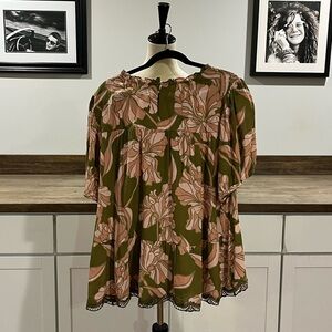Daniel Rainn Leena Crochet Detail Blouse Floral Green and Pink Women's size 3X
