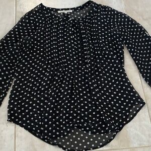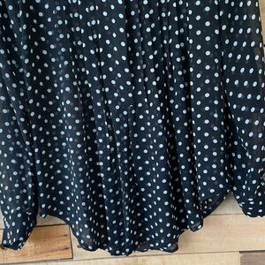 Daniel Rainn M Blouse Sheer Polka Dot Roll Tab Sleeve Pleated Front Romantic