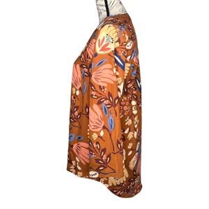Daniel Rainn (M) Floral Notch Neck Blouse Long Sleeve Roll Tab High Low Hem Top
