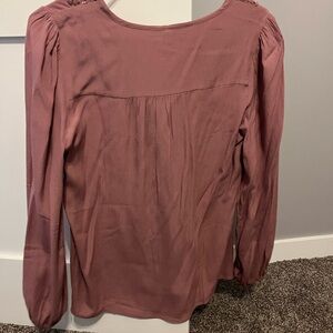 Elegant mauve blouse with crochet neckline. Long sleeves. Perfect for any occasion.
