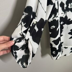 Chic blouse with bold floral pattern. Versatile and stylish.