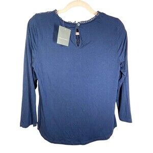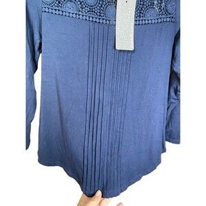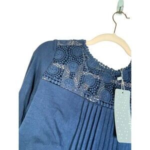 Daniel Rainn Navy Lace Yolk Pleat Front 3/4 Sleeve Jersey Top Size PSmall NWT