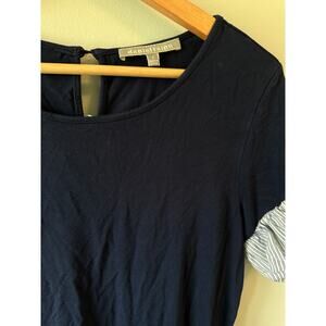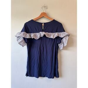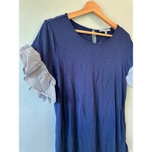 EUC daniel rainn Navy Stretchy Top with Pinstripe Ruffled Sleeve Accent size small. Super soft, stretchy material.