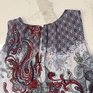 Daniel Rainn Paisley Layered Pleated Sleeveless Blouse Womens Large BlueRed Boho