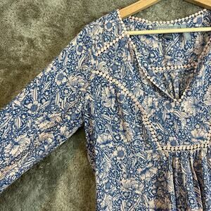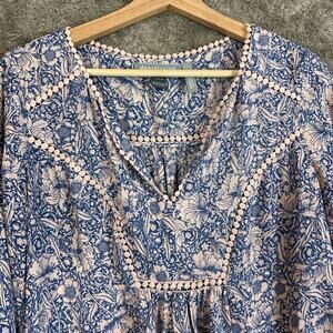 Daniel Rainn x Pea in the Pod Maternity Tunic Top Blouse Women's M Medium Blue Pink Floral Boho Peasant
