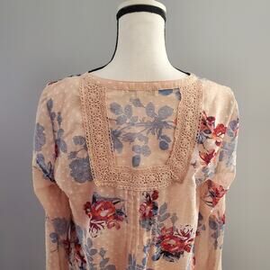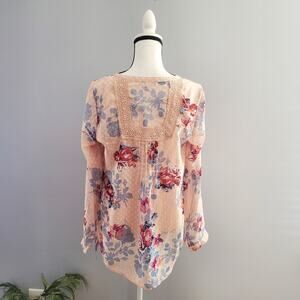 Daniel Rainn Pink Sheer Boho Floral Shirt Top Size M