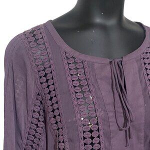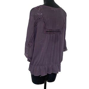 Daniel Rainn Purple Chiffon Tunic Top Lace Detail Size Large