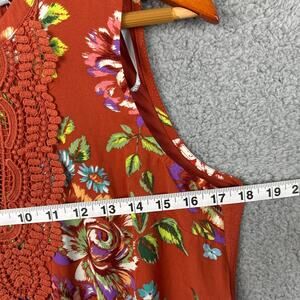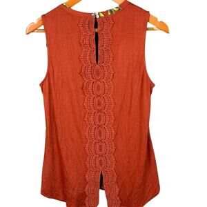 Daniel Rainn Quin Blouse Rust Floral Embroidered Lace Split Hem Size S NWT Boho